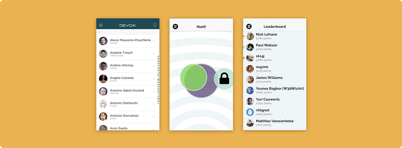 We created the 2011 to 2015 official Devoxx conference app for iOS and Android. In 2014 we created a beacon game called 'Devoxx Hunt'.